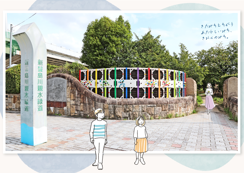 東端は服部緑地円形花壇から、曽根駅前、文化芸術センター、新豊島川親水緑道、利倉地区のカフェ、最西端のクリーンランドひろばまで、移ろいゆく季節の中、人や車の往来の中で、昼と夜の中で、見過ごされていた場所の何かを浮き上がらせ、人それぞれの街への新たなイメージを想い起こさせるマチなかアート。