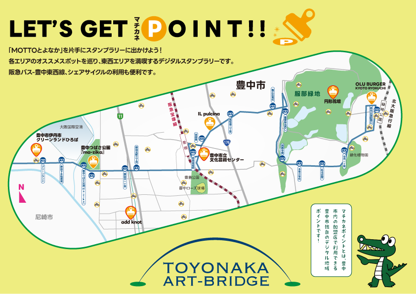 TOYONAKA ART-BRIDGEが発行する、各エリア毎の情報を掲載したアートライフマガジン「MOTTOとよなか」を片手にスタンプラリーに出かけよう!各エリアのスポット、オススメの飲食店、アート作品などを巡る、豊中東西エリアを満喫するスタンプラリーです。2025年10月18日スタート!