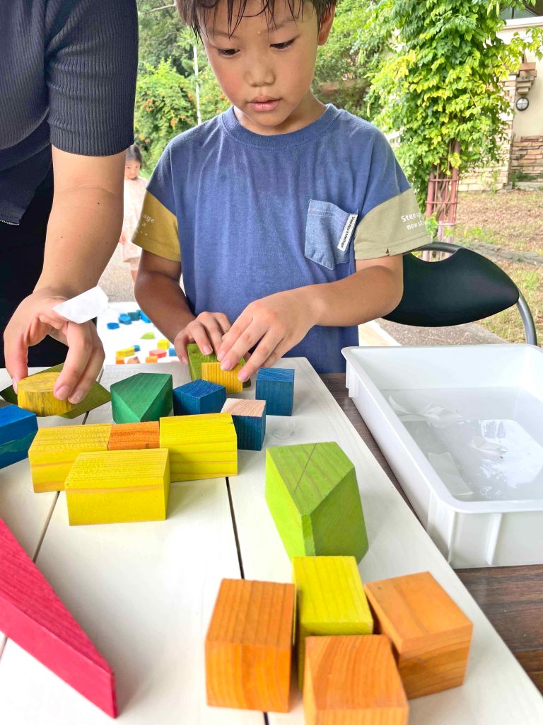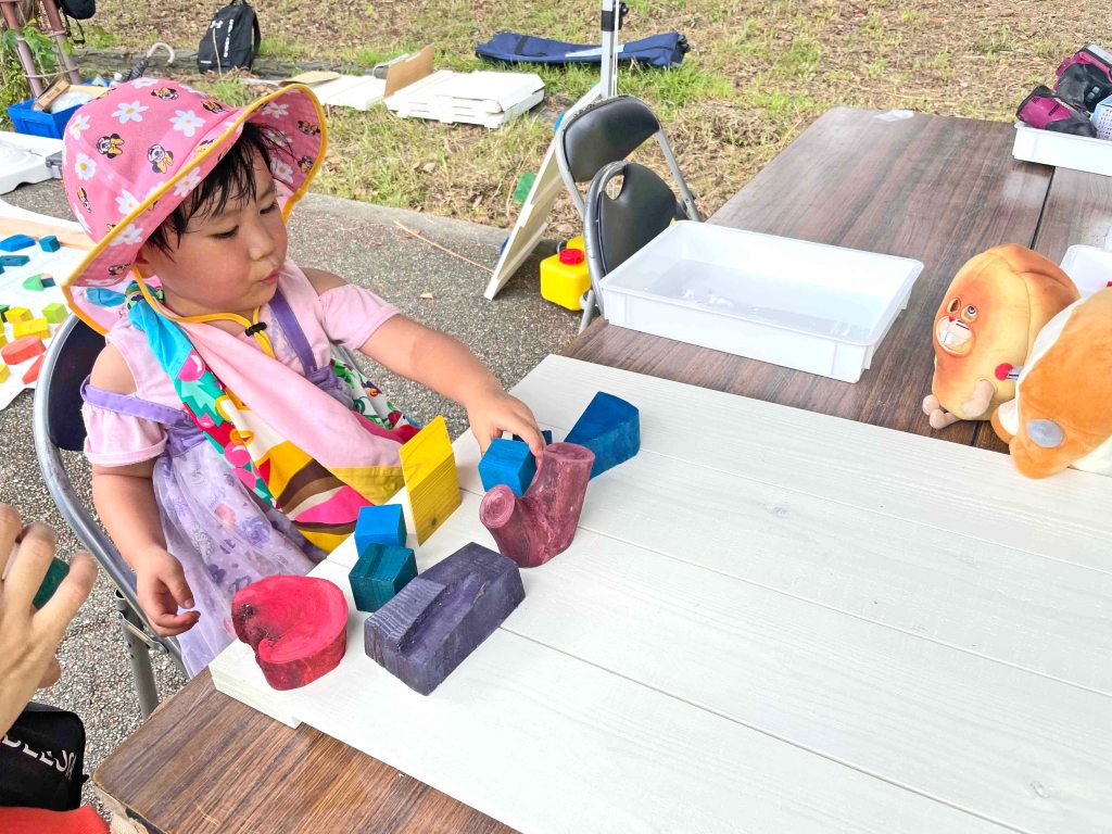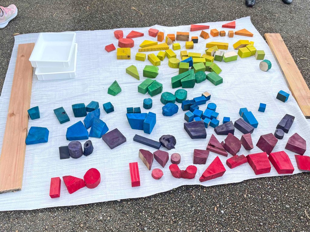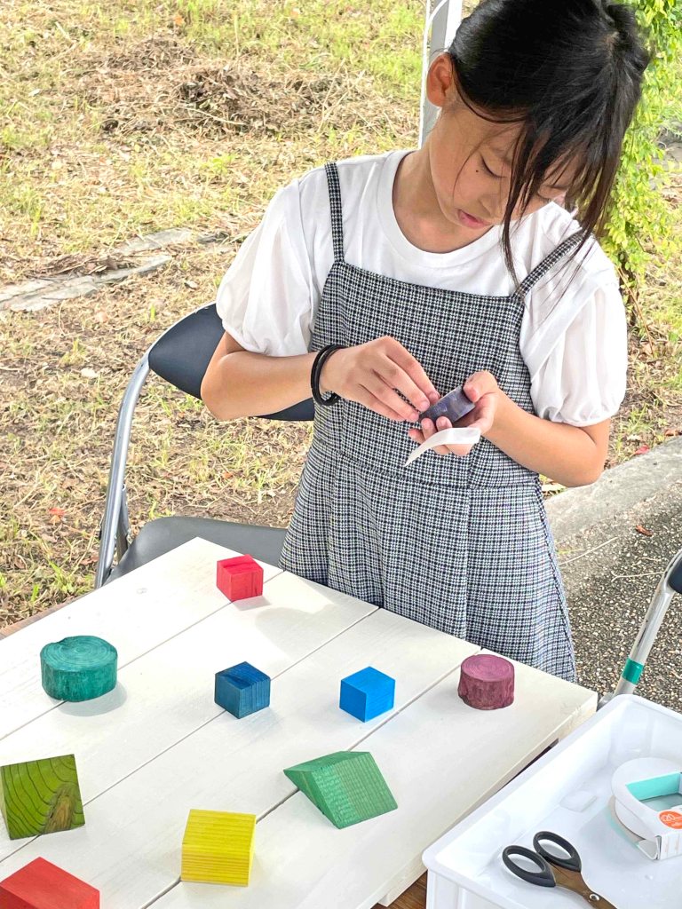 子供を中心に、そして親子ともども、色付けされた端材をじっくり選びながら、楽しみながら様々なイメージを作り出していきました。