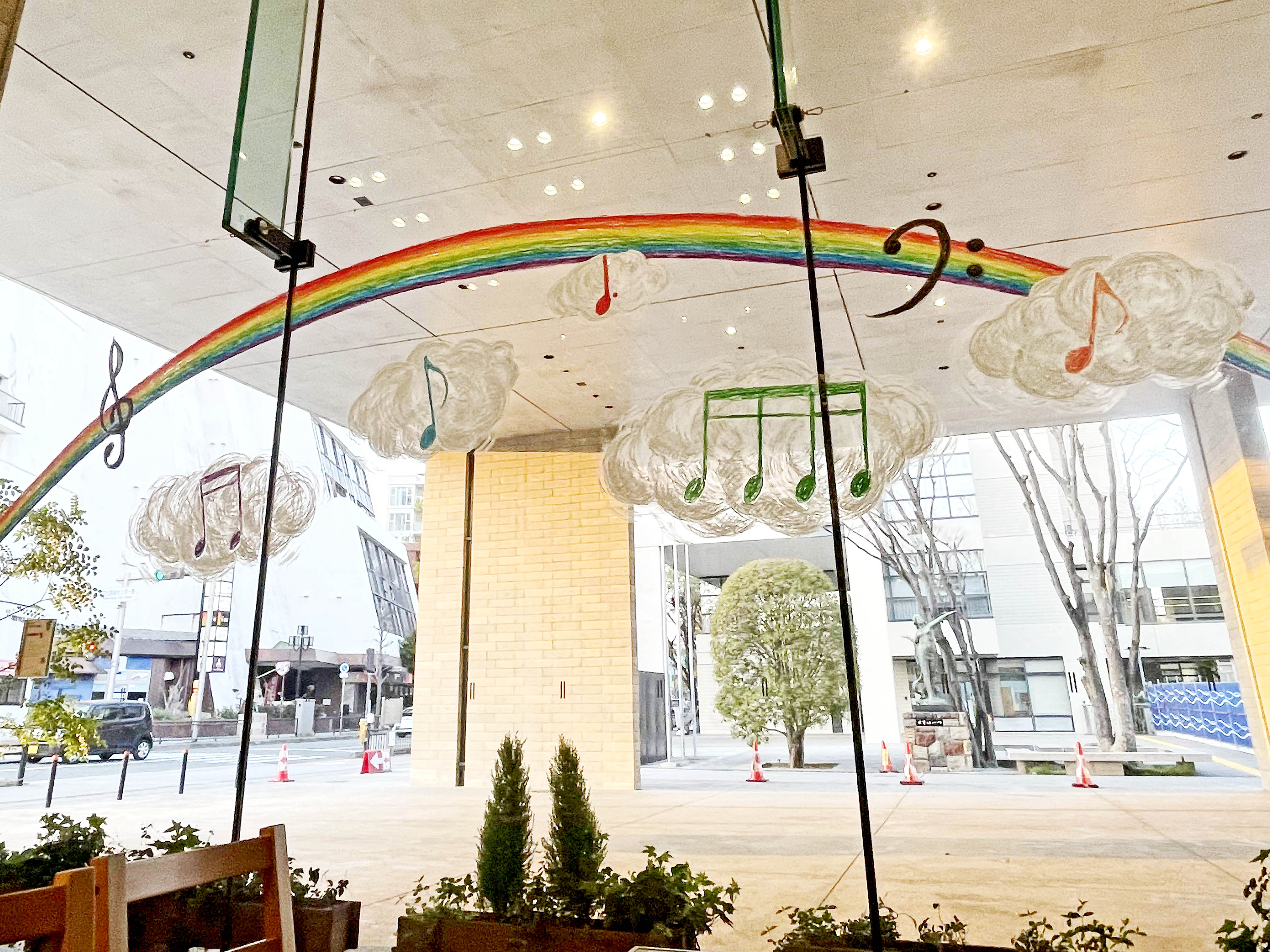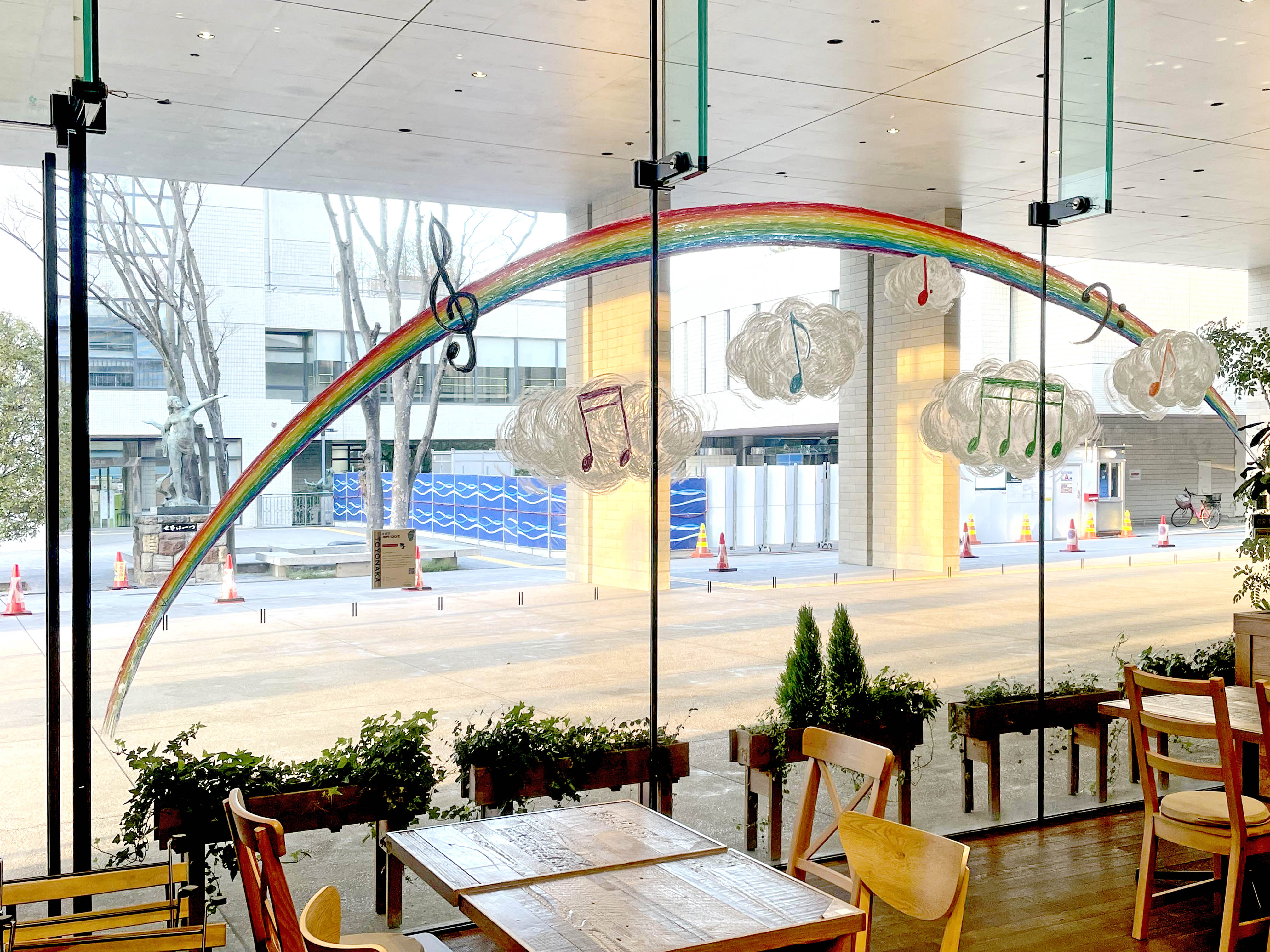 音楽とアートの街である豊中の空にかかる虹と、ただよう雲。それは日常の中で、ふとした瞬間にかいま見る、晴れやかな笑顔のように、ココロに彩りと潤いをもたらす、とっておきの存在。そして、ここ“オリオンコーヒー”にも、誰もが憩え、賑わうスペースとして、ガラス窓に「TOYONAKA ART-BRIDGE」の虹が雲と共にたちあらわれ、訪れる人たちを迎えています。 協力/オリオンコーヒー