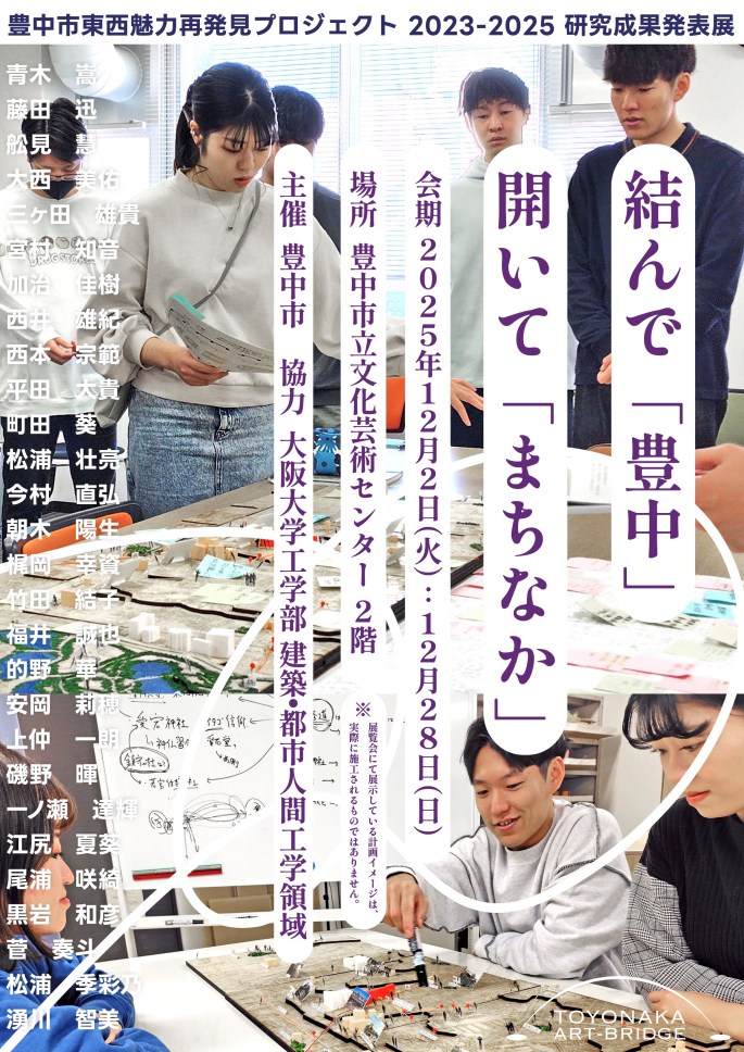 ただいま、豊中市文化芸術センター2Fにて、大阪大学大阪大学工学部 建築•都市人間工学領域による「豊中市東西魅力再発見プロジェクト」の研究成果展示を開催中です。