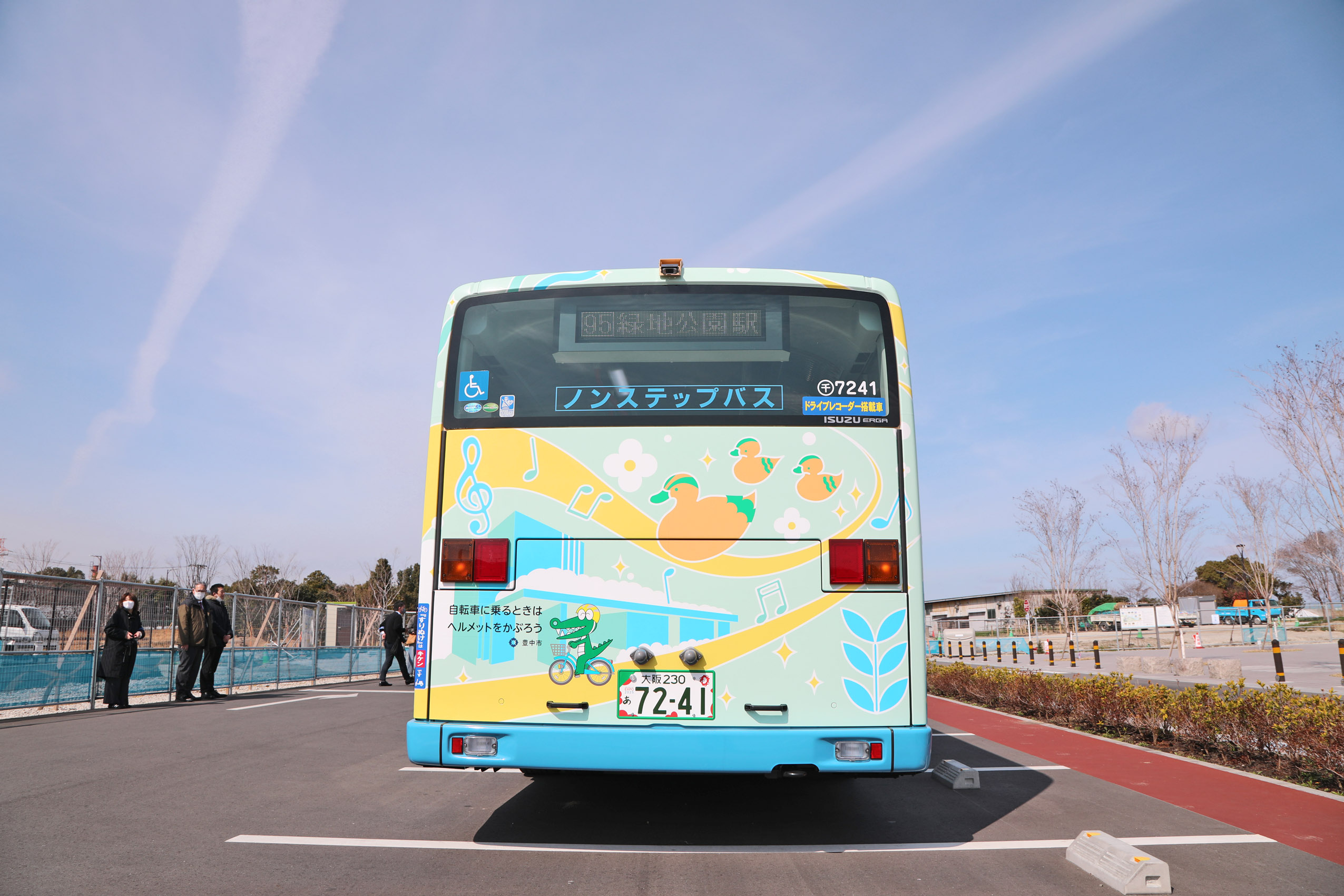 豊中つばさ公園『ma-zika』一部開園記念のラッピングバスが運行に先立ってお披露目されました!