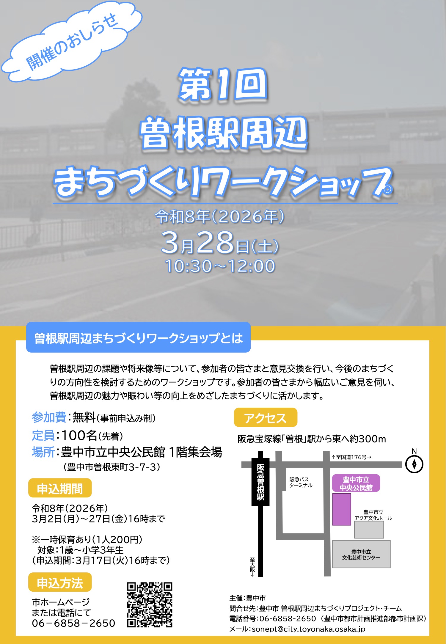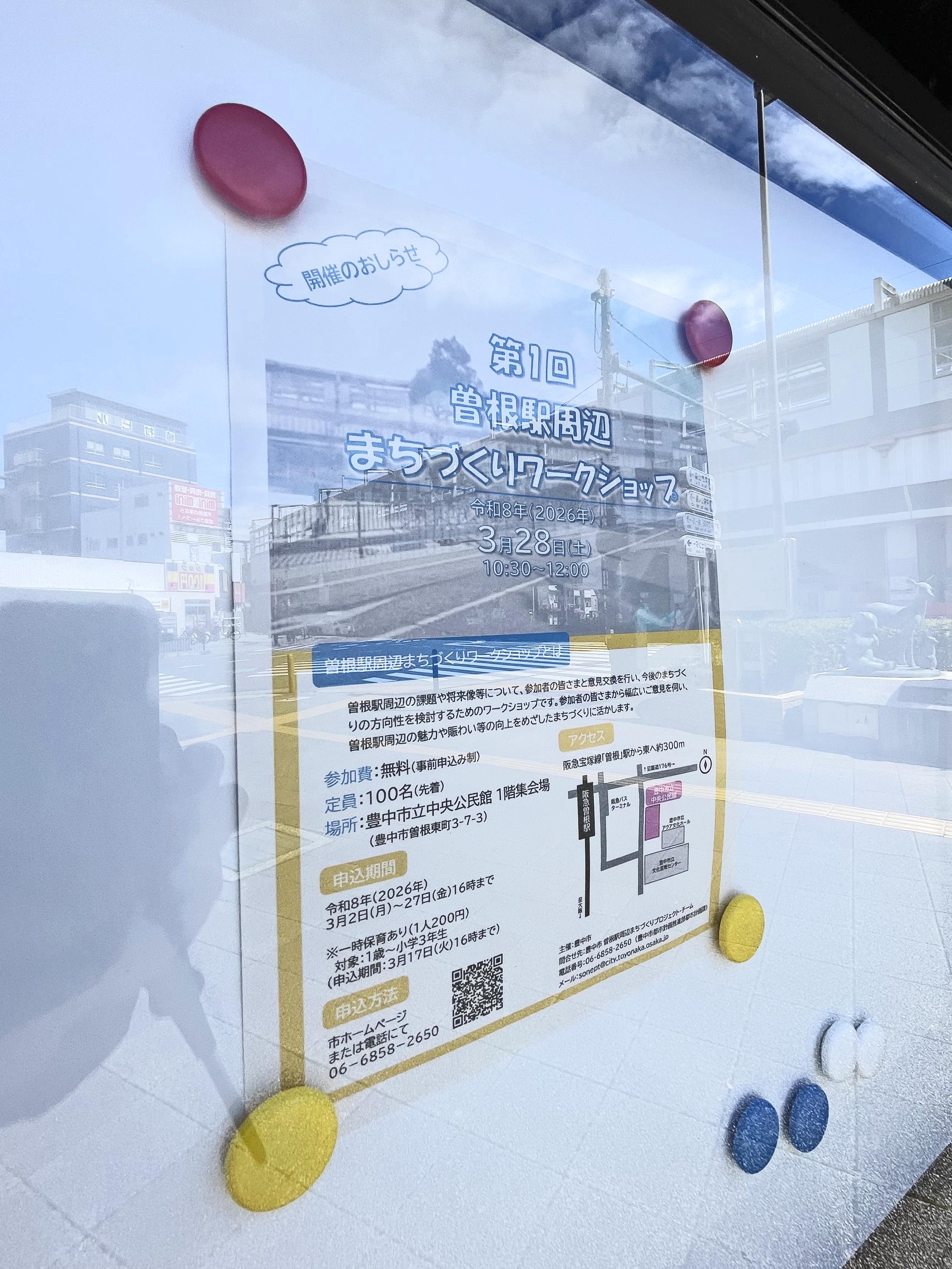 最初の掲示は「第1回曽根駅周辺まちづくりワークショップ」のお知らせです。