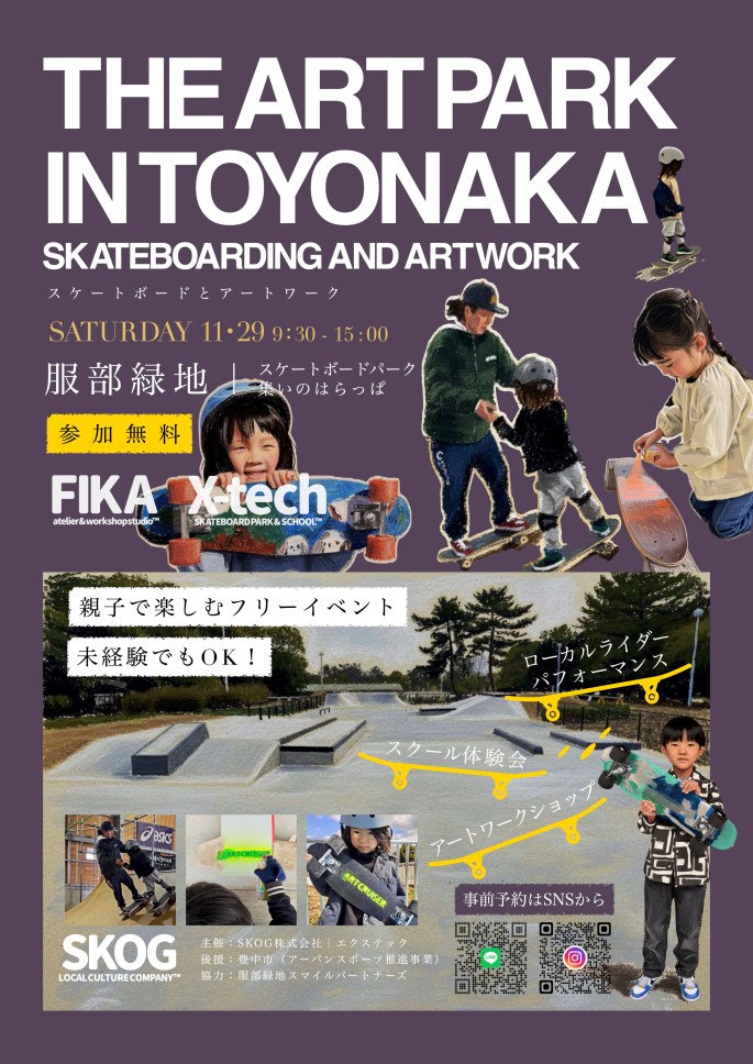スケートボード&アートワーク 今年度に服部緑地で新しく開設したスケートボードパークにて開催する、スケートボード…