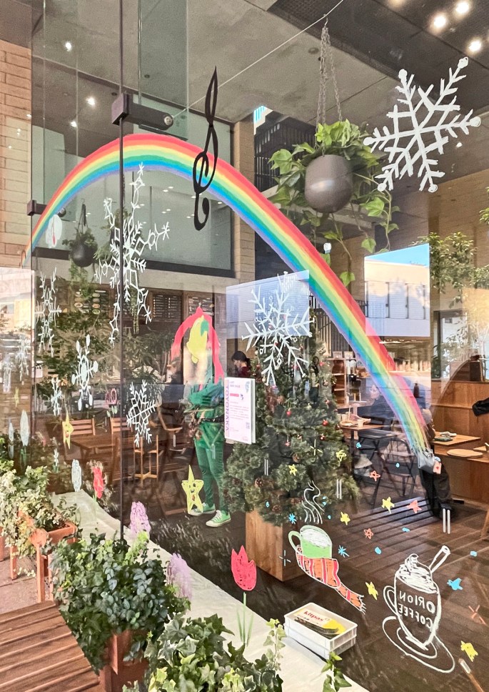 「にぎやかな空へ」in ORION COFFEE▶︎作品ページへ メンテナンス、及び、ワークショップによる書き…